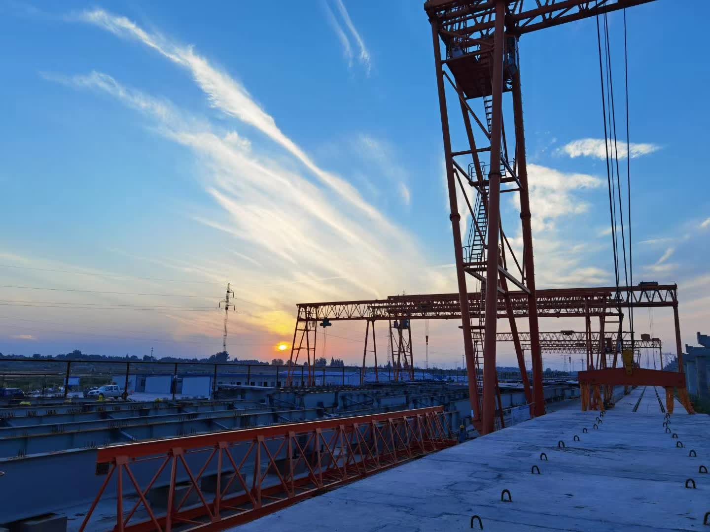 (海波重科新聞報道)2020年5月26日上午9:00,業(yè)主、項目公司副總經(jīng)理黃遵義、長江路橋江北東高速項目經(jīng)理王懷才、副經(jīng)理白朝峰、總工楊建波、PC預制場項目負責人及項目副經(jīng)理程波、技術部部長歐陽旭、監(jiān)理單位總監(jiān)辦總監(jiān)文輝、副總監(jiān)張貴士、副總監(jiān)趙廷奎、質量部部長鄧再鑫、試驗室主任安紅偉、海波重科總經(jīng)理劉乾俊、海波重科項目現(xiàn)場負責人閆思為等各位領導、現(xiàn)場作業(yè)人員及媒體記者工作人員共同見證江北東高速項目工業(yè)化橋梁鋼混組合梁首吊的成功。