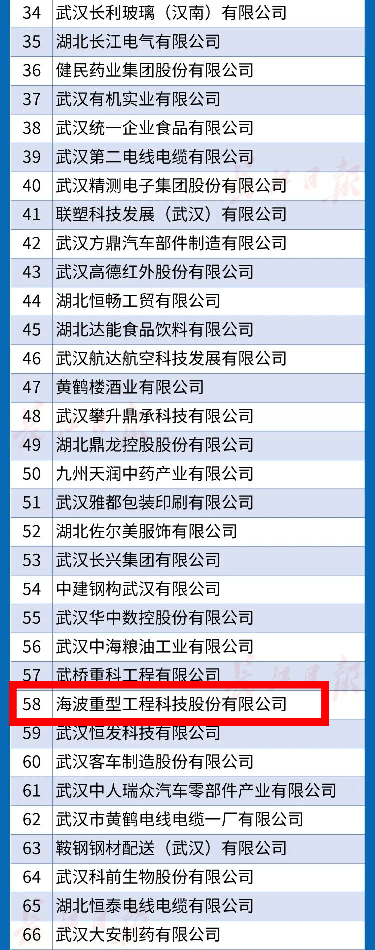 海波要聞丨熱烈祝賀海波重科榮獲"武漢市2020年制造業(yè)企業(yè)100強(qiáng)"