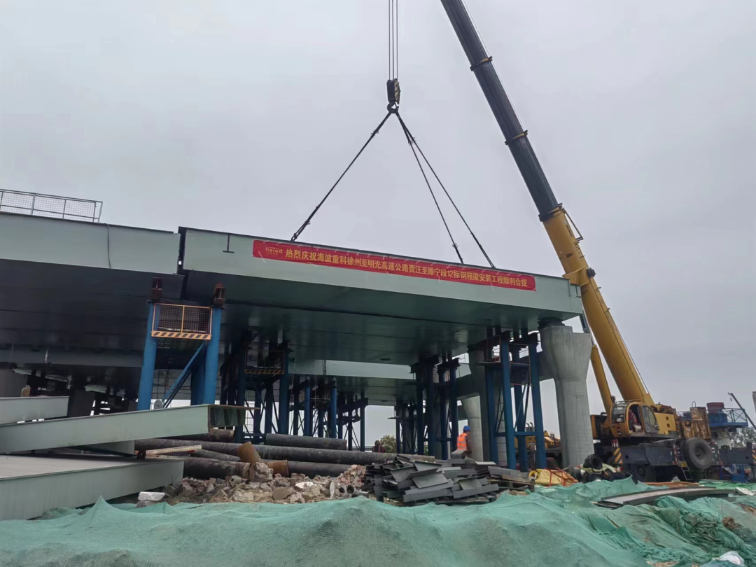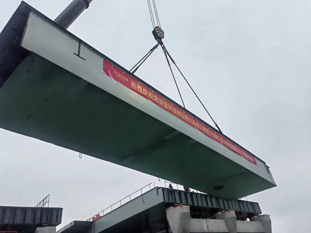? ? ? ?2023年4月22日,海波重科參建的徐州至明光高速公路賈汪至睢寧段XM-TJ12標段鋼箱梁安裝工程順利完成合攏。這不僅為后續(xù)施工奠定了良好基礎,也為全線通車的目標推進了重要一步!