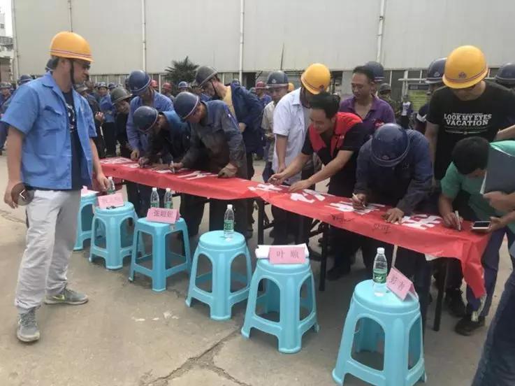接著由敖志碩給全體員工講解了滅火要點,為了將所學知識付諸實踐,“趁熱打鐵”在員工中普及滅火器的使用方法,講解結束后,在廠區(qū)四跨前面舉行了滅火器滅火演練比賽,由公司領導打分,最終技術部獲得第一名,下料機加車間獲得第二名,總經(jīng)辦第三名。在滅火器滅火實戰(zhàn)演練比賽后,進行了“我要安全,從我做起”的宣誓簽字活動,全體員工進行簽字活動
