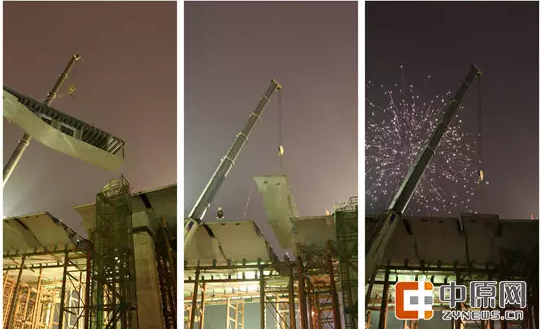 21點11分,隨著最后一塊箱梁的順利落座,這標(biāo)志農(nóng)業(yè)路西三環(huán)互通立交主線結(jié)構(gòu)正式合龍